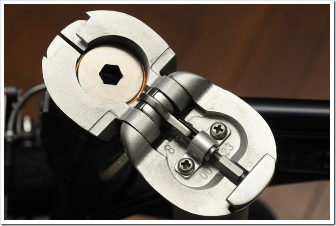 將這T型裝置轉換至另外一邊,也就是連接到輪胎的那邊,於上圖最上面的扣桿下有一個六面柱狀體,旋轉即可調整鬆緊度,基本上不用轉太多,1/16圈慢慢調整。