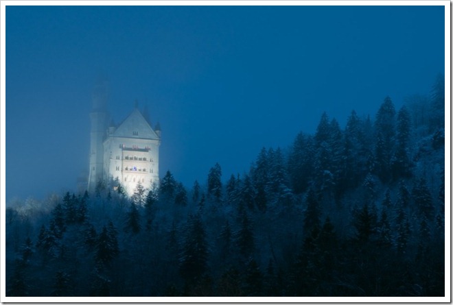 到了深夜,整個小鎮開始起霧,而氣溫也下降了很多,遠方的天鵝堡,已經快看不到了!!
